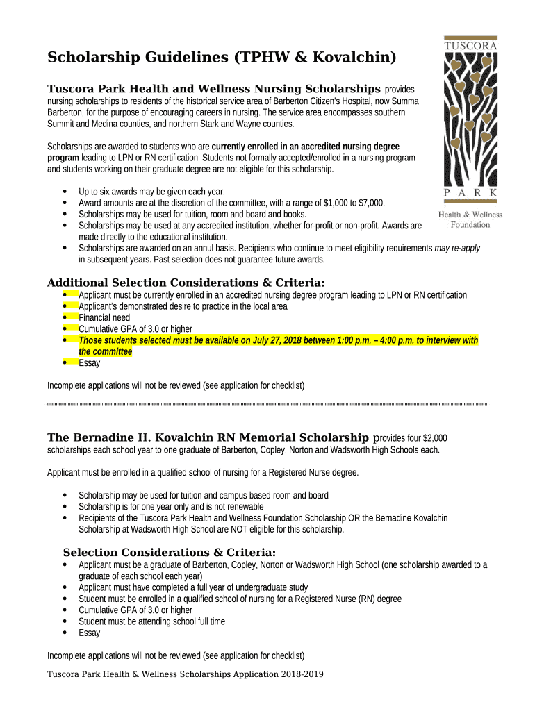Instructions for the Tuscora Park Health & Wellness FoundationFind ... form
