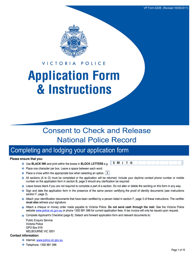 VP Form 820B (Revised 16/08/2011)Consent to Check and Release