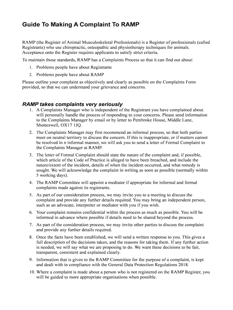 Get the free Guide To Making A Complaint To RAMP - RAMP register