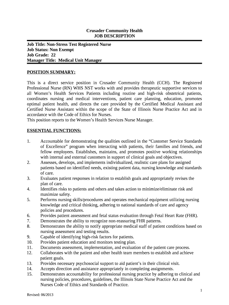 Instructions for the form Non-Stress Test Registered Nurse Job Status - Crusader ...