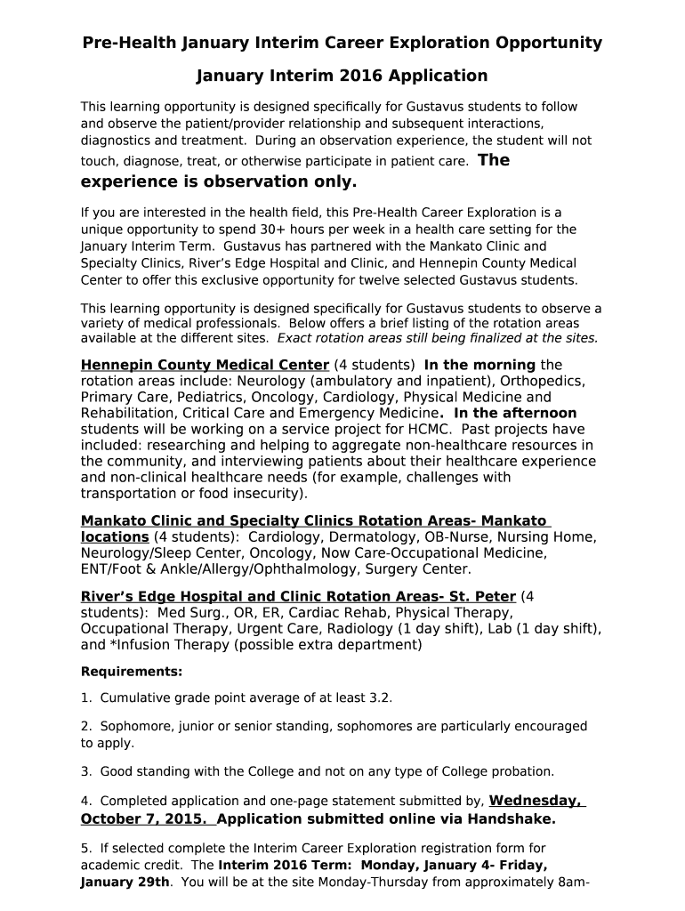 Template Pre-Health January Interim Career Exploration Opportunity ... instructions