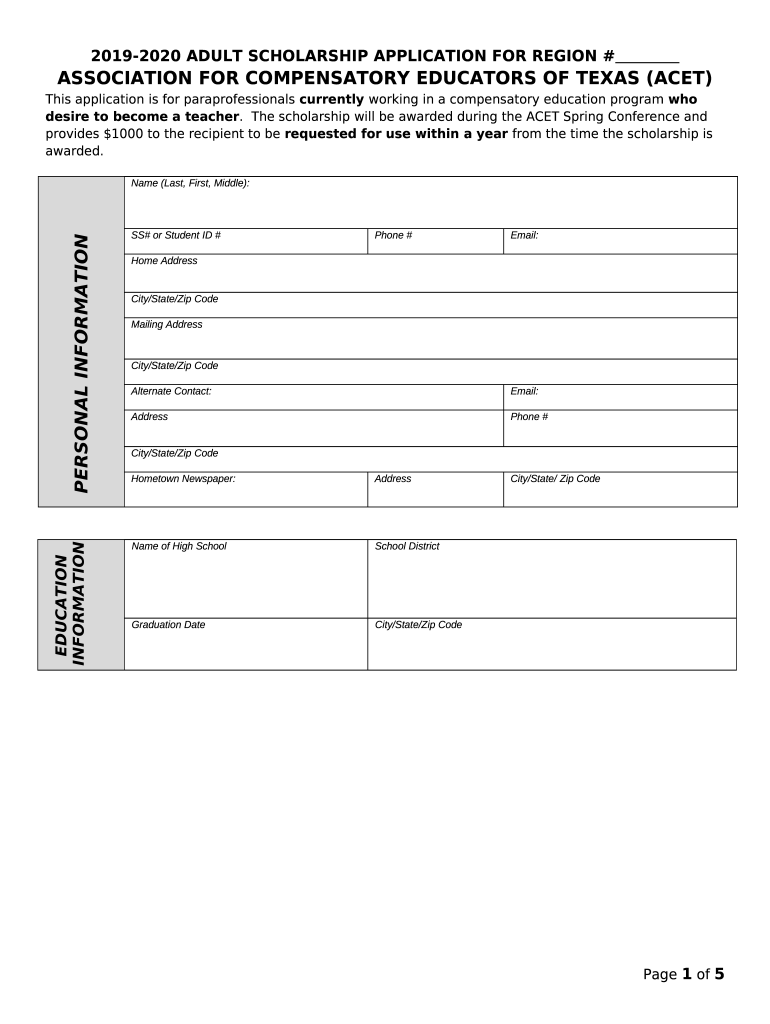 Instructions for the form Scholarship ApplicationAssociation For Compensatory ...