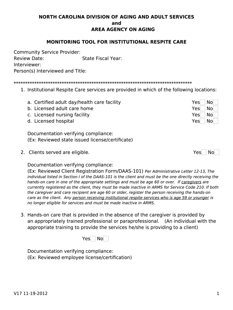 NC DHHS: Division of Aging and Adult Services Monitoring ... template instructions