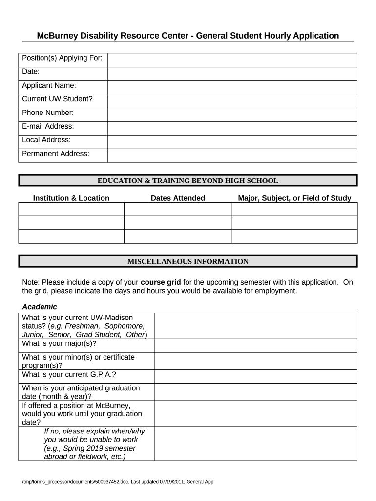 How to fill General Student Hourly Application word template