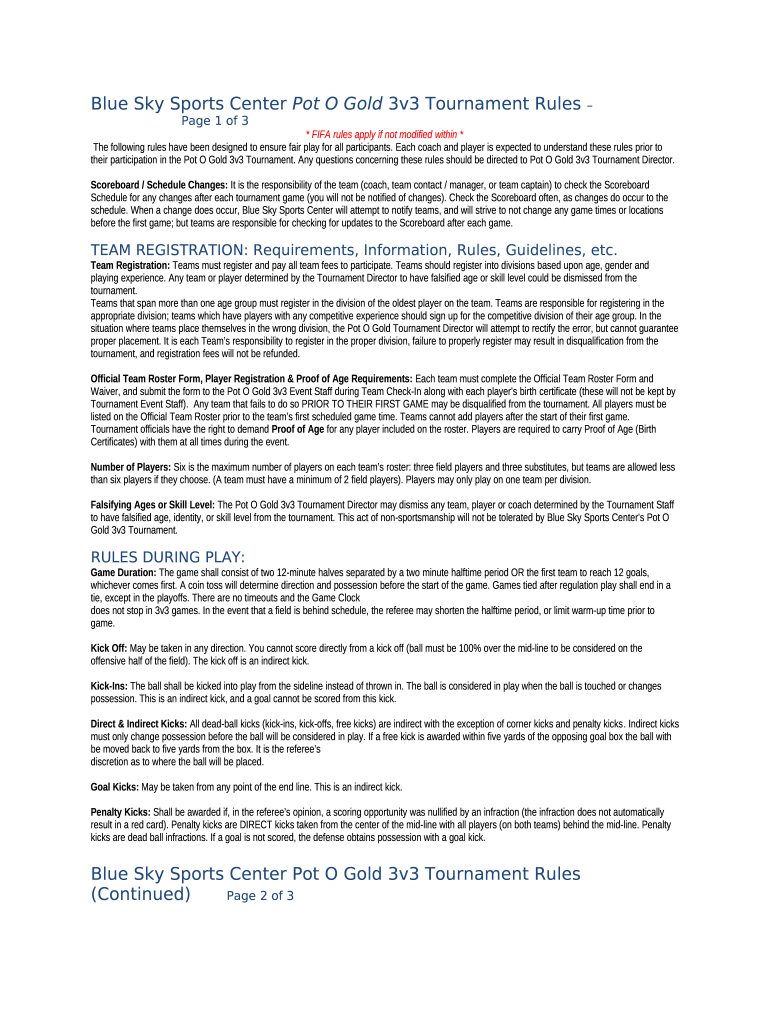 Template Blue Sky Sports Center Pot O Gold 3v3 Tournament Rules instructions