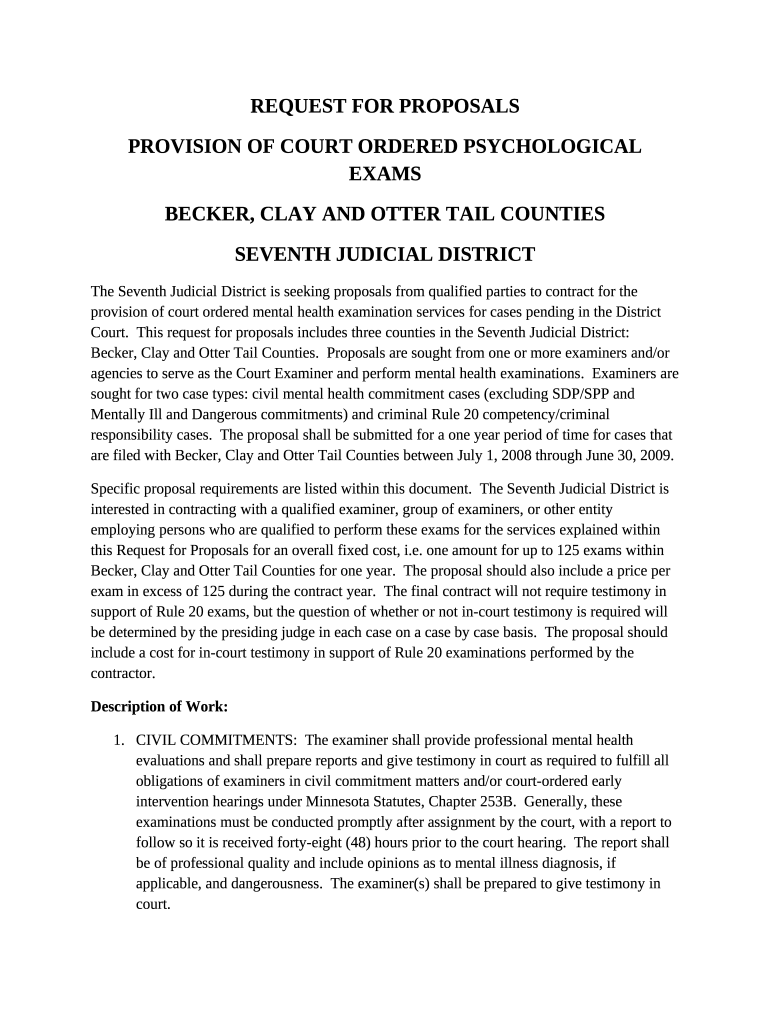 How should you fill out the request for proposals provision of court ordered psychological ... template