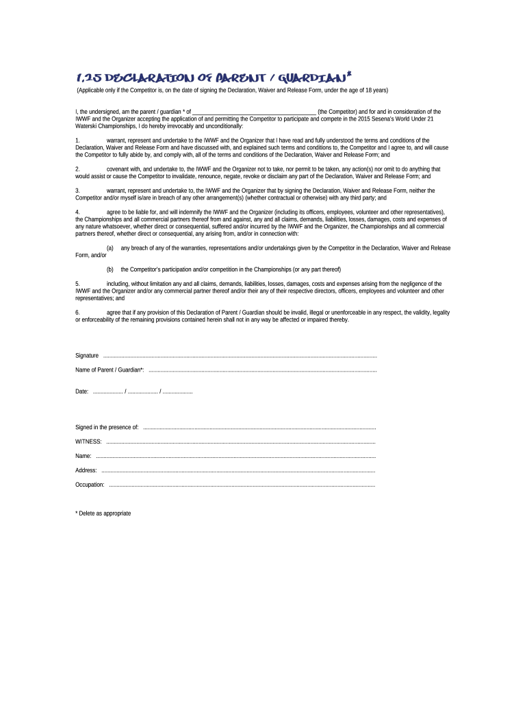 Instructions for the Declaration, Waiver and Release - Cablewakeboard.net form