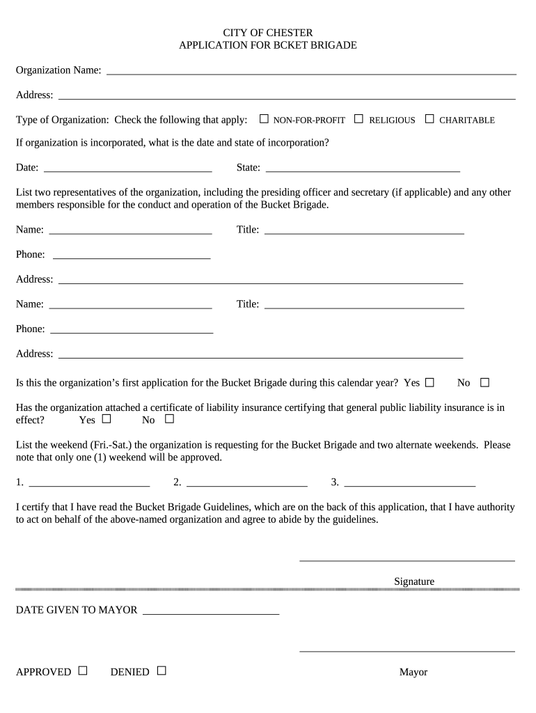 bucket brigade application - Chester, Illinois template instructions