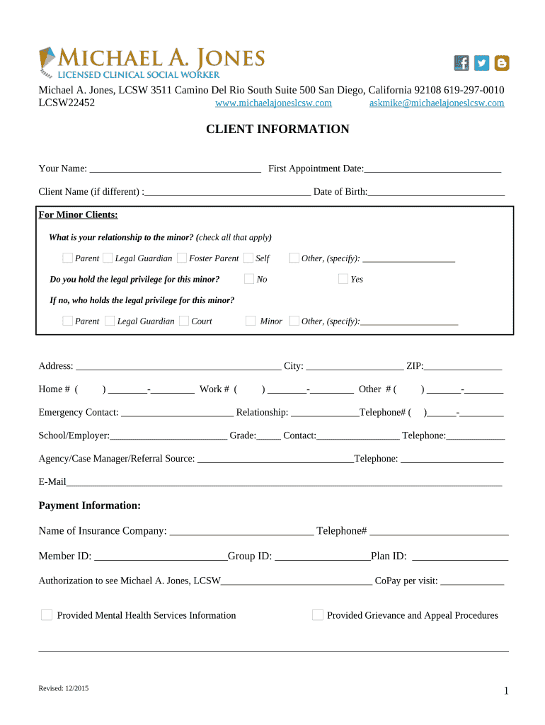 Instructions for the form Services - Michael A. Jones - Licensed Clinical Social Worker