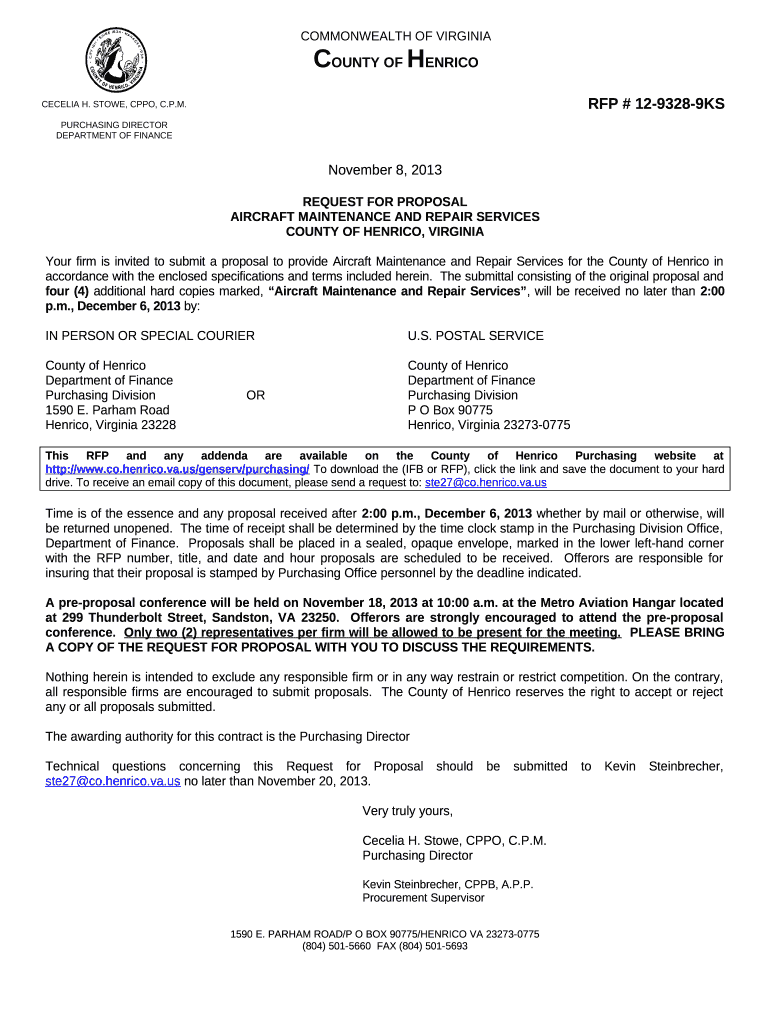 Template Purchasing Department REQUEST FOR PROPOSAL instructions