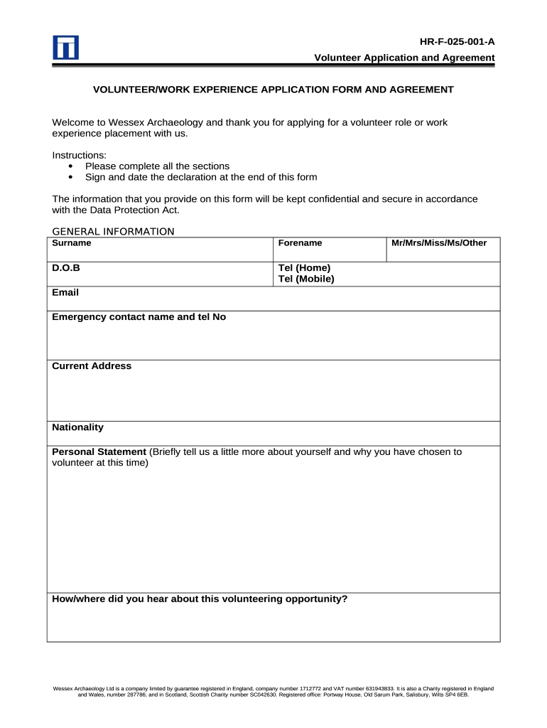What is Volunteer Application - Wessex Archaeology Form?