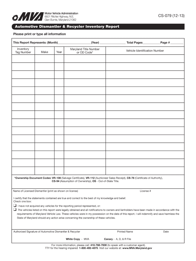 Get the free Maryland Automotive Dismantler Inventory Report