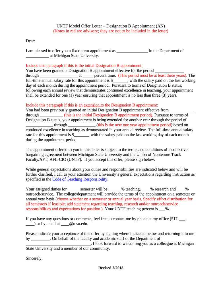 Instructions for the Offer Letter Agreement - SEC.gov form
