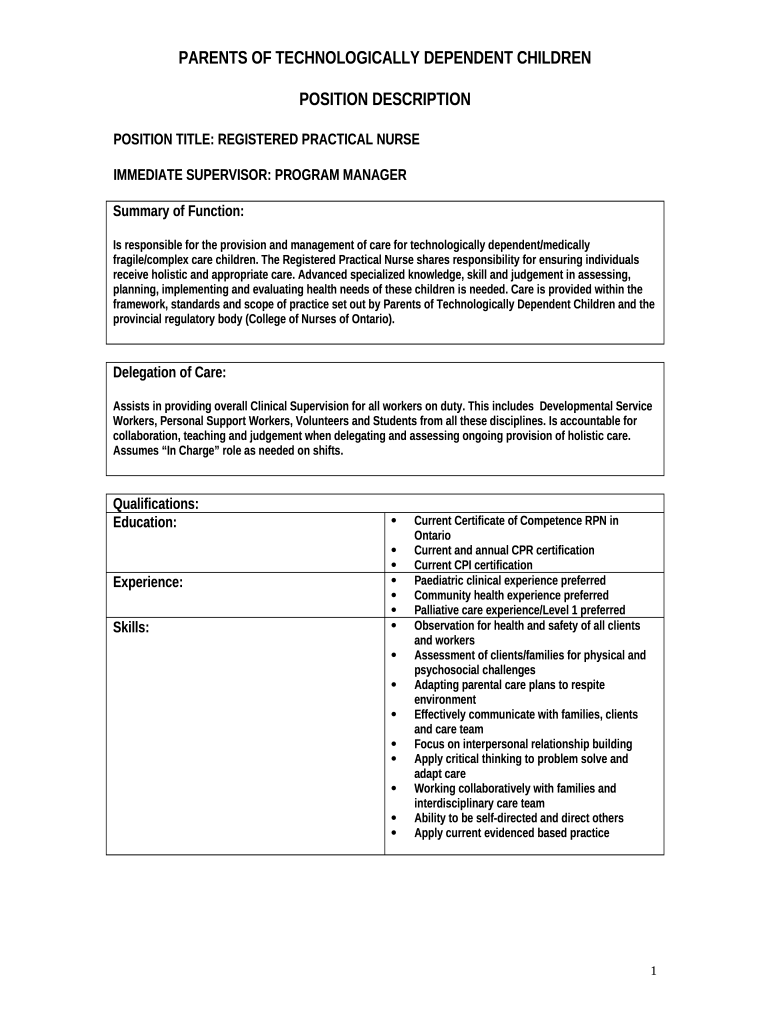 Instructions for the form PARENTS OF TECHNOLOGICALLY DEPENDENT CHILDREN