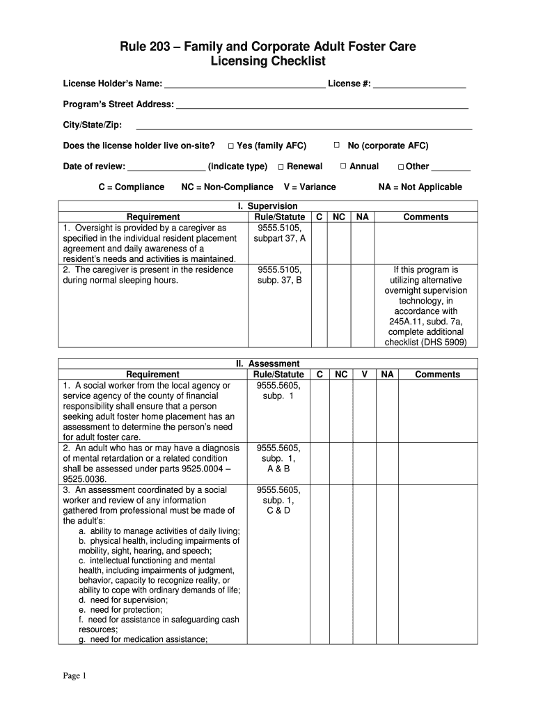 Get the free Minnesota Adult Foster Care Licensing Checklist