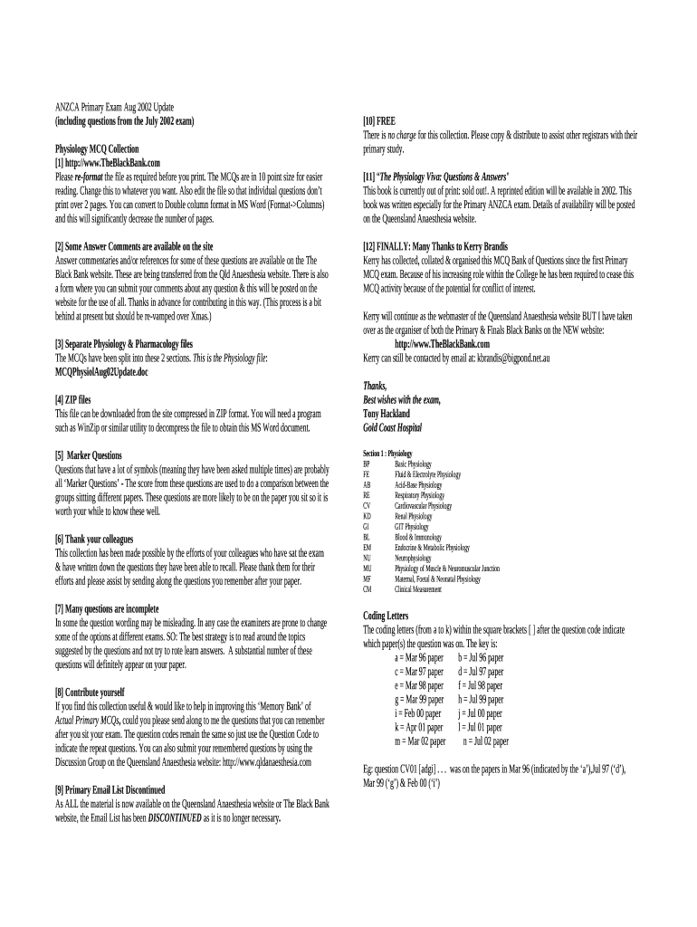 The (including questions from the July 2002 exam) is a fillable form in MS Word extension you can get filled-out and signed for specified needs. Next, it is provided to the exact addressee to provide certain information and data. The completion and signing can be done in hard copy or with a trusted solution e. g. PDFfiller. Such applications help to send in any PDF or Word file online. It also lets you customize its appearance depending on your needs and put an official legal e-signature. Once finished, the user sends the (including questions from the July 2002 exam) to the recipient or several recipients by email or fax. PDFfiller offers a feature and options that make your Word form printable. It offers various options for printing out. It does no matter how you send a form after filling it out - physically or electronically - it will always look neat and firm. To not to create a new document from scratch again and again, turn the original document as a template. Later, you will have an editable sample.