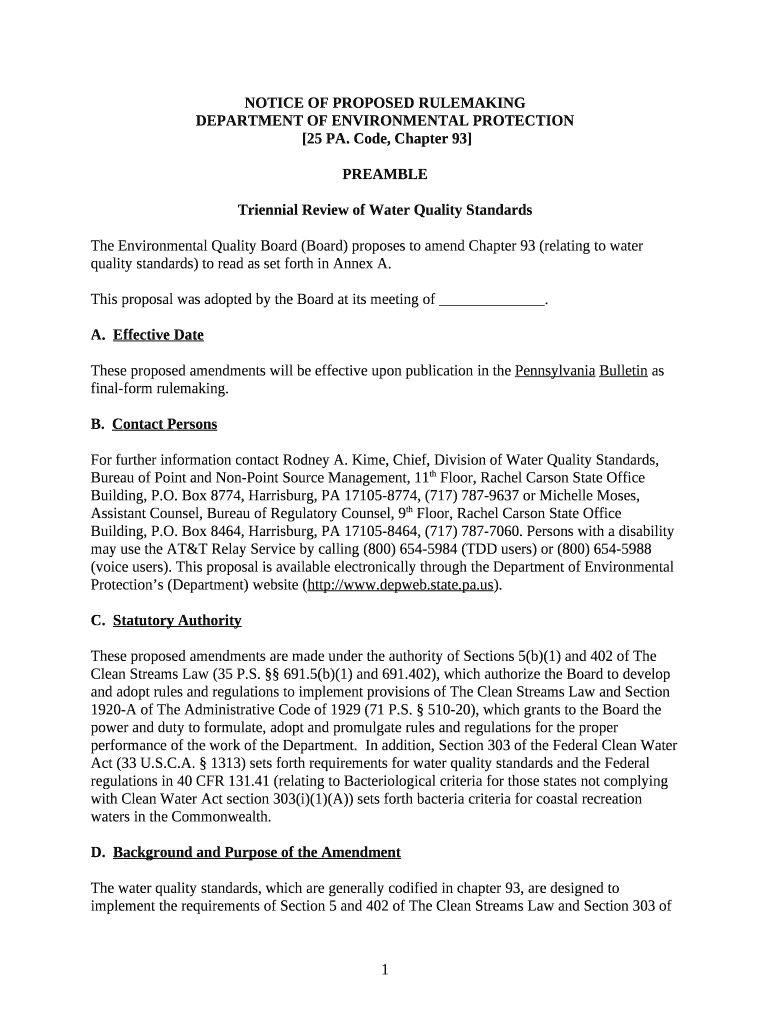 The Notice of Final Rulemaking Department of Environmental ... is a document required to be submitted to the required address to provide specific information. It needs to be completed and signed, which is possible manually, or with the help of a particular software e. g. PDFfiller. This tool allows to fill out any PDF or Word document directly in your browser, customize it according to your requirements and put a legally-binding e-signature. Right after completion, you can easily send the Notice of Final Rulemaking Department of Environmental ... to the relevant receiver, or multiple ones via email or fax. The template is printable too due to PDFfiller feature and options presented for printing out adjustment. Both in digital and in hard copy, your form should have a clean and professional appearance. You can also save it as the template for later, so you don't need to create a new blank form over and over. You need just to edit the ready sample.
