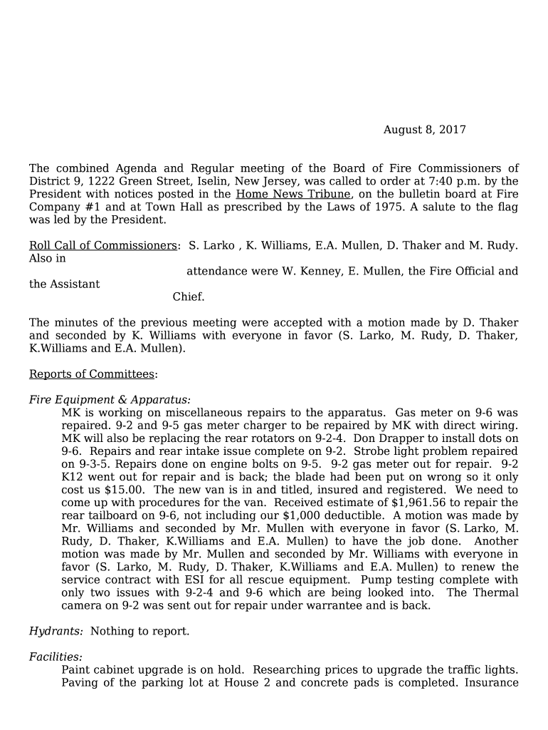 The by the President with notices posted in the Home News Tribune, on the bulletin board at Fire Company #1 and at Town Hall as prescribed by the Laws of 1975 is a writable document which can be completed and signed for certain reasons. Then, it is furnished to the relevant addressee to provide specific information of certain kinds. The completion and signing is available in hard copy by hand or via a trusted service like PDFfiller. Such tools help to send in any PDF or Word file without printing out. While doing that, you can customize it depending on the needs you have and put a valid e-signature. Upon finishing, the user sends the by the President with notices posted in the Home News Tribune, on the bulletin board at Fire Company #1 and at Town Hall as prescribed by the Laws of 1975 to the recipient or several ones by email or fax. PDFfiller is known for a feature and options that make your Word form printable. It includes a number of options when printing out appearance. No matter, how you'll deliver a document - physically or electronically - it will always look professional and firm. To not to create a new document from scratch every time, make the original form as a template. After that, you will have a rewritable sample.