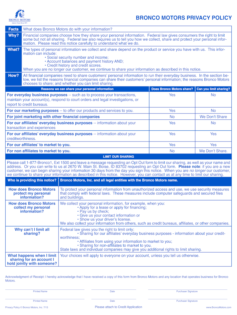 Get, Create, Make and Sign bronco motors privacy policy
