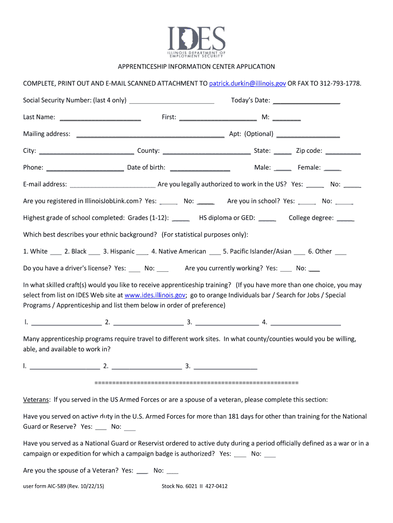 Anyone residing in Illinois who is interested in apprenticeship training programs is eligible to apply using this form.