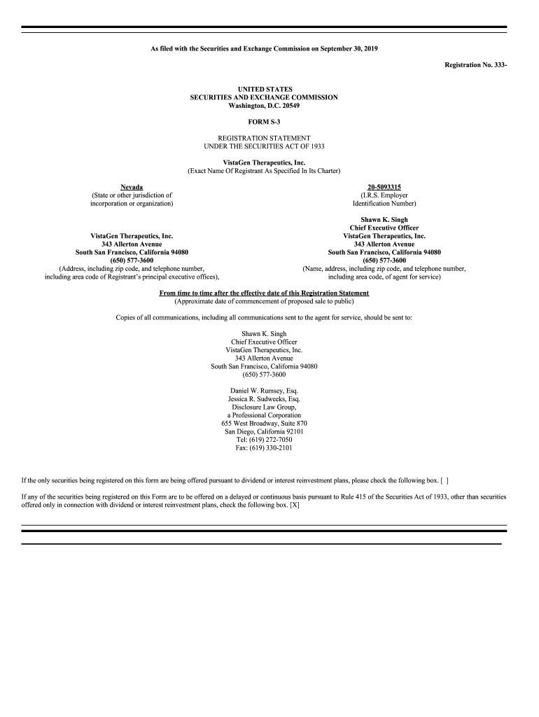 As filed with the Securities and Exchange Commission on September 30, 2019,