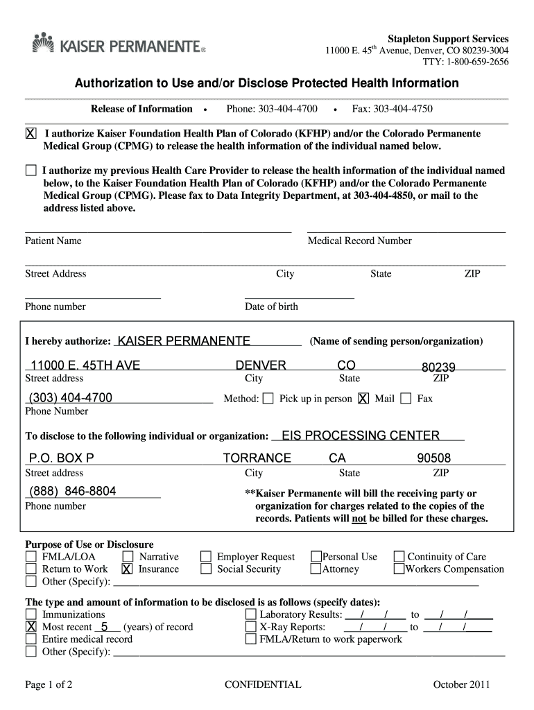 The Authorization to Use and/or Disclose Protected Health Information is a crucial document in the healthcare sector. This form serves to authorize the release of protected health information, allowing patients to control who accesses their medical records. It is specifically tailored for use in Colorado, involving key organizations like Kaiser Foundation Health Plan of Colorado and Colorado Permanente Medical Group. The function of this health information release form is vital for ensuring that the right individuals can obtain necessary health data.