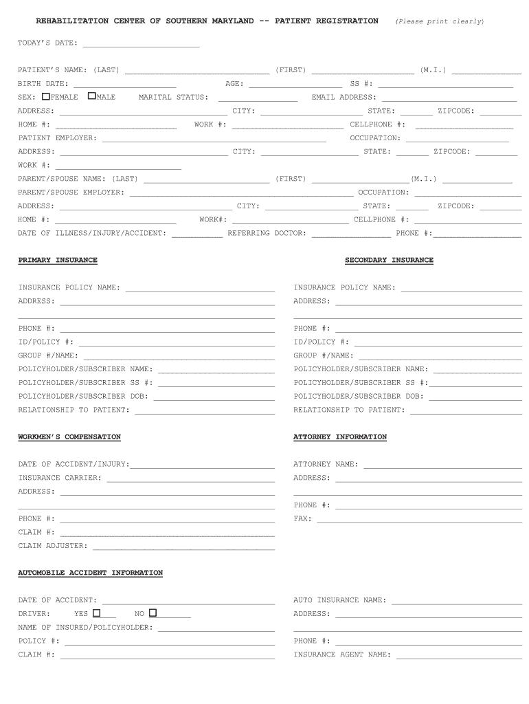 Get the free Rehabilitation Center Patient Registration Form