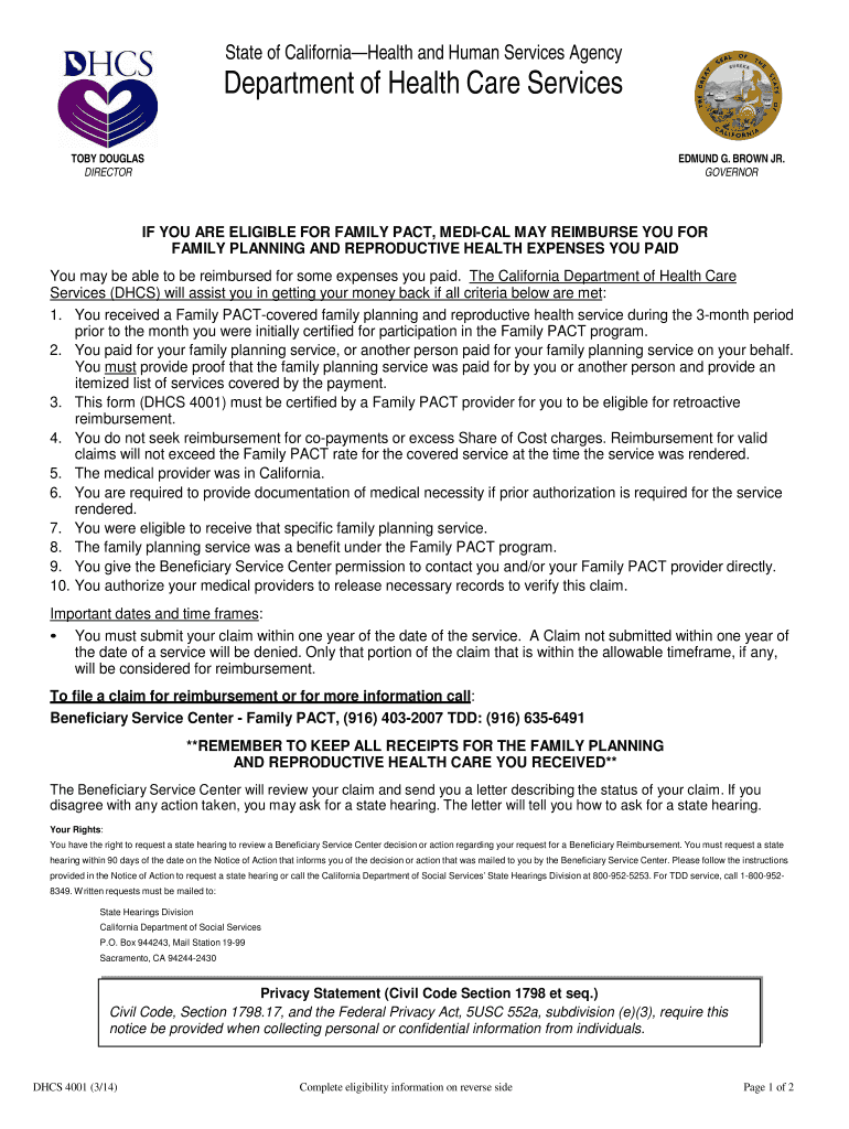 Individuals who have received Family PACT-covered services and seek reimbursement for those expenses can use this form. Eligibility typically requires prior enrollment in the Family PACT program.