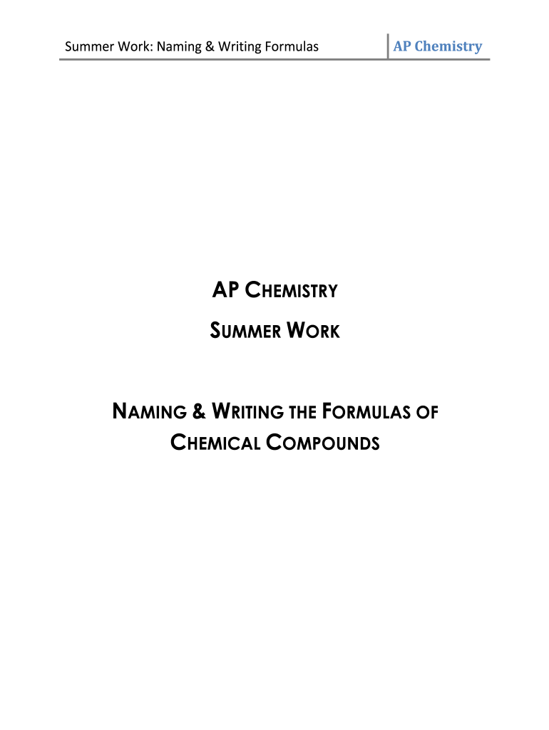Get the free AP Chemistry Summer Work - Naming & Writing Formulas.docx