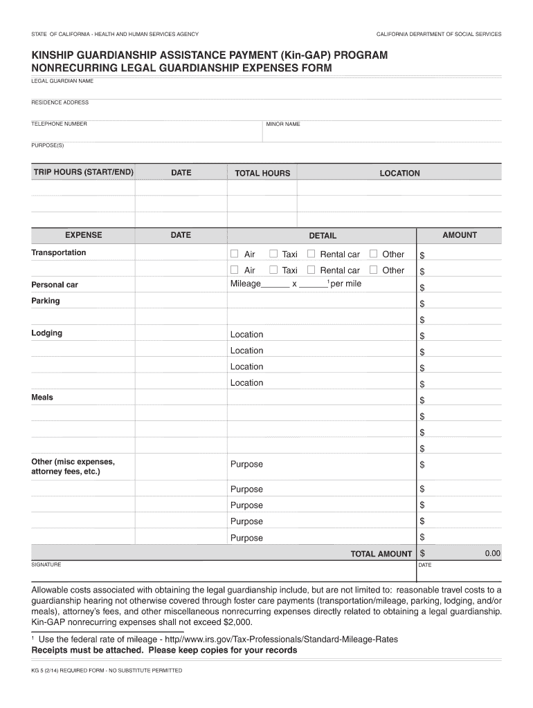 Get the free California Kin-GAP Legal Guardianship Expenses Form