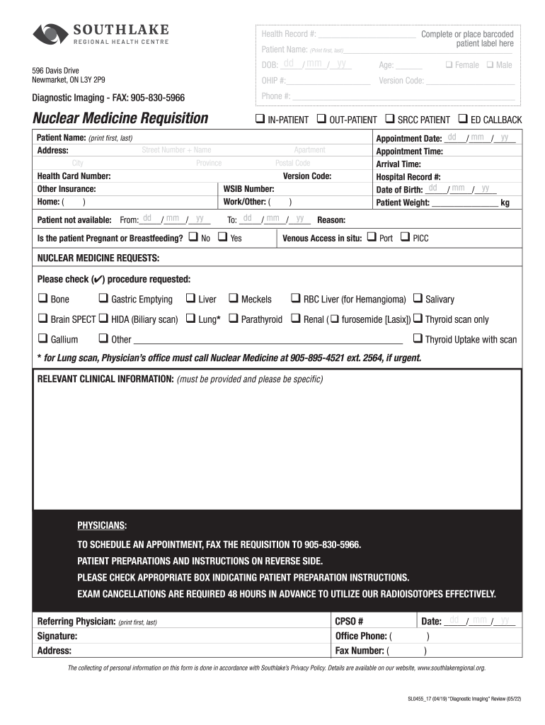 Get the free Nuclear Medicine Requisition - Southlake Regional Health ...