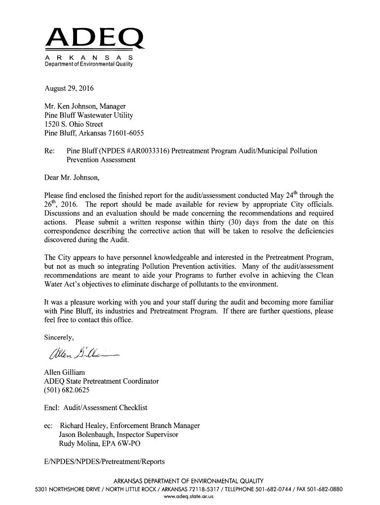 ARKANSASDepartment of Environmental Quality August 29, 2016,
