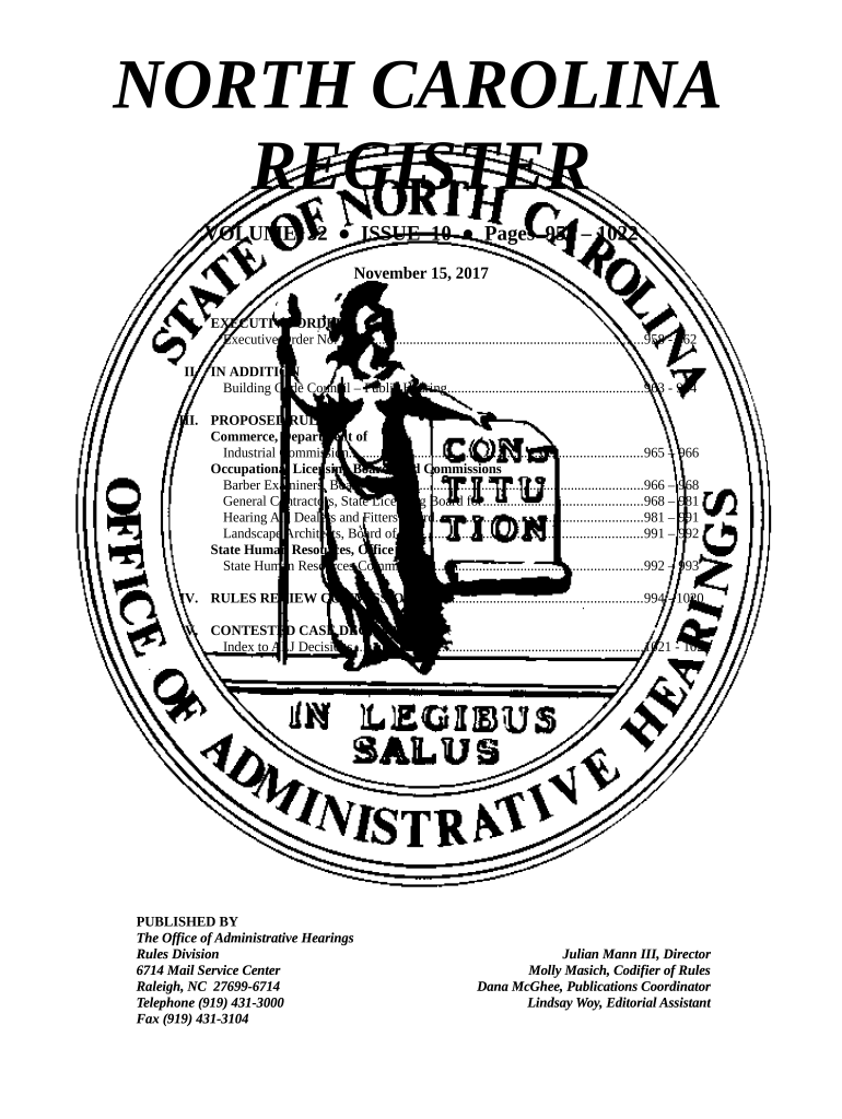 - Search for the NC-Register-Volume-32-Issue-10.docx - NC.gov from the Search box on the top of the main page.