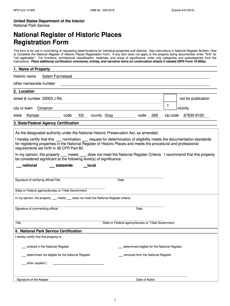 NPS Form 10900OMB No. 10240018(Expires 5/31/2012)United States Department of the Interior National Park ServiceNational Register of Historic Places Registration Form This form is for use in nominating