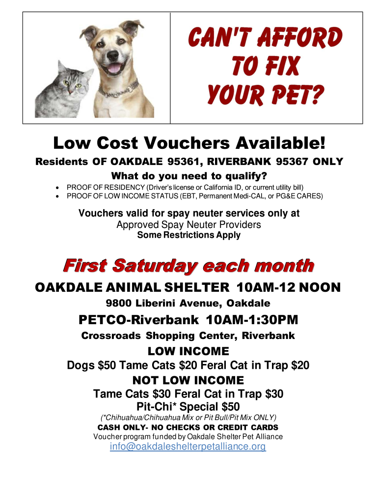 Get the free Low Cost Vouchers Available for All - Oakdale Shelter Pet ...