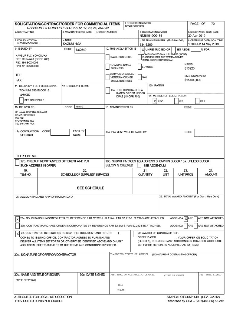 2. CONTRACT NO.3. AWARD/EFFECTIVE DATE7. FOR SOLICITATION