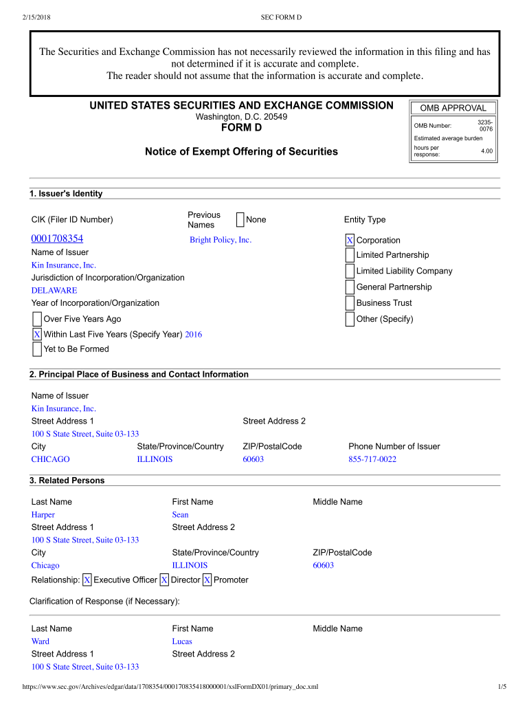 2/15/2018SEC FORM The Securities and Exchange Commission has not necessarily reviewed the information in this long and has