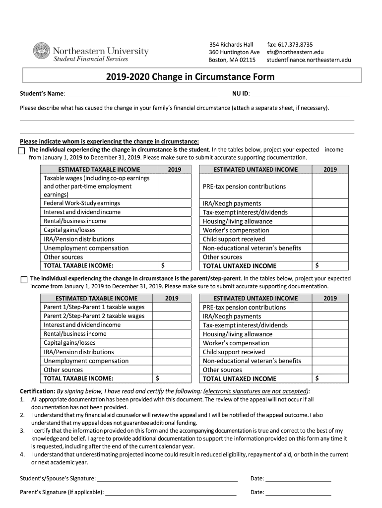 student finance.northeastern.edu20192020 Change in Circumstance Form