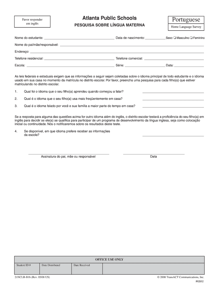 The Home Language Survey is an essential document utilized by Atlanta Public Schools during the student enrollment process. It collects critical information regarding a student’s primary language and home language usage, which plays a significant role in determining appropriate educational support for each child.