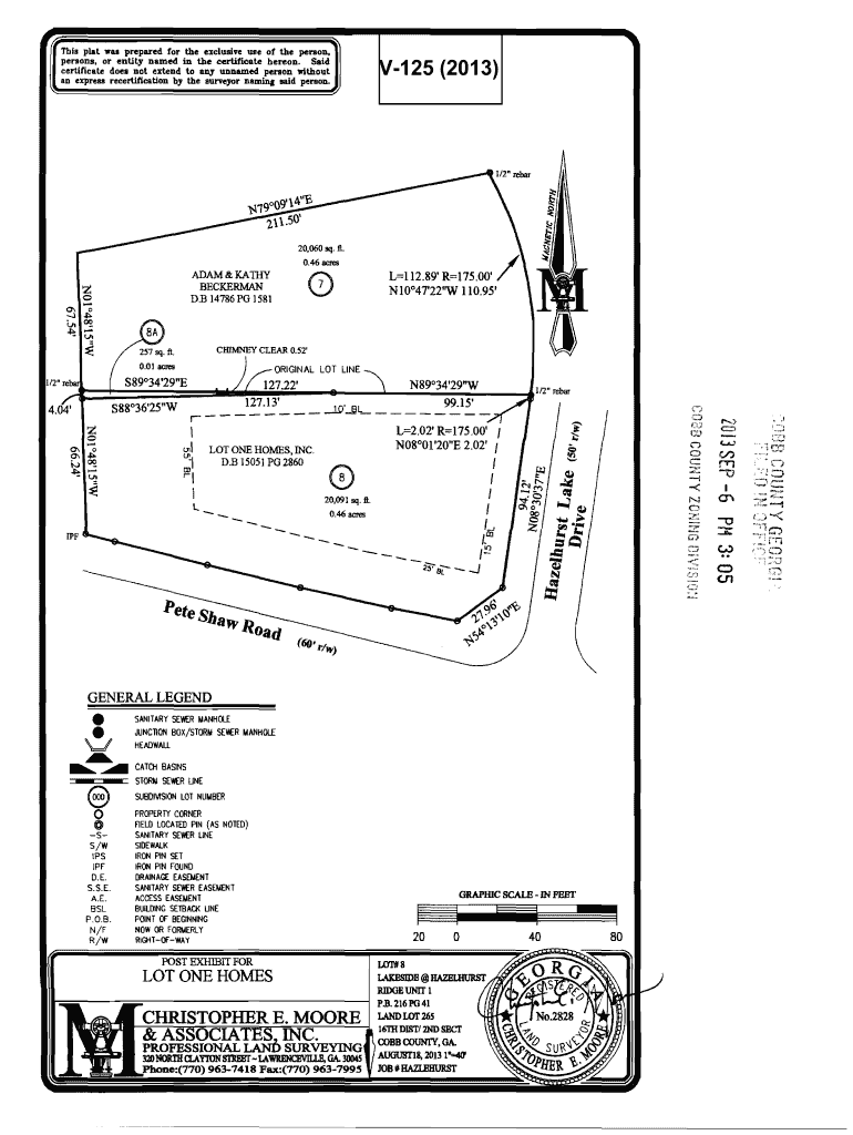 V125 (2013) V125 (2013) Revised Plan THIS PAGE INTENTIONALLY LEFT BLANK APPLICANT: Adam Becker man PETITION No.: V125 PHONE: 7703622545 DATE OF HEARING: 11132013 REPRESENTATIVE: Adam Becker man PRESENT
