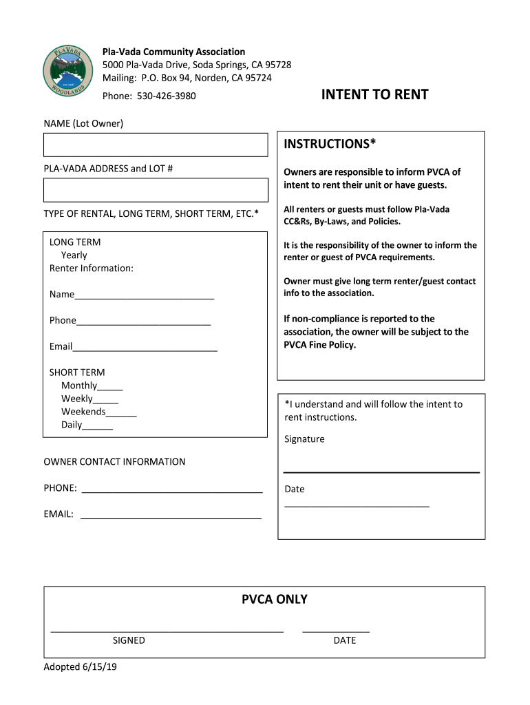 Get the free Plavada Intent to rent form 6-15-19.docx