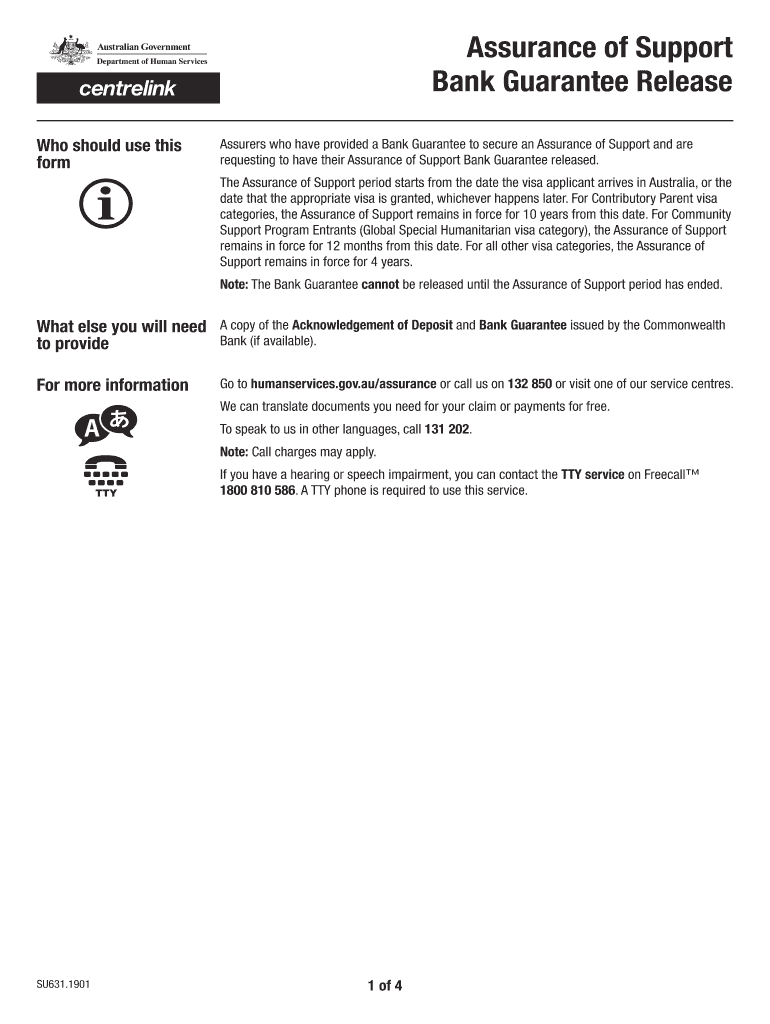 Get the free Assurance of SupportBank Guarantee Release (SU631)