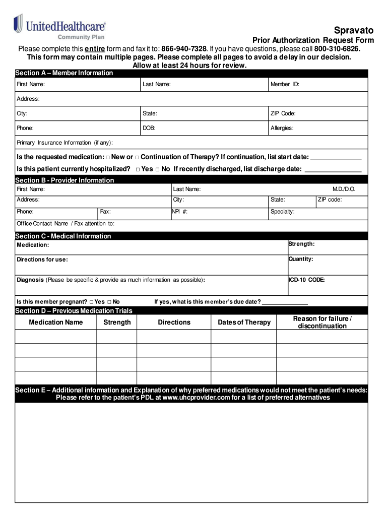 Private Prior Authorization Request Form Please complete this entire form and fax it to: 8669407328. If you have questions, please call 8003106826. This form may contain multiple pages. Please complete