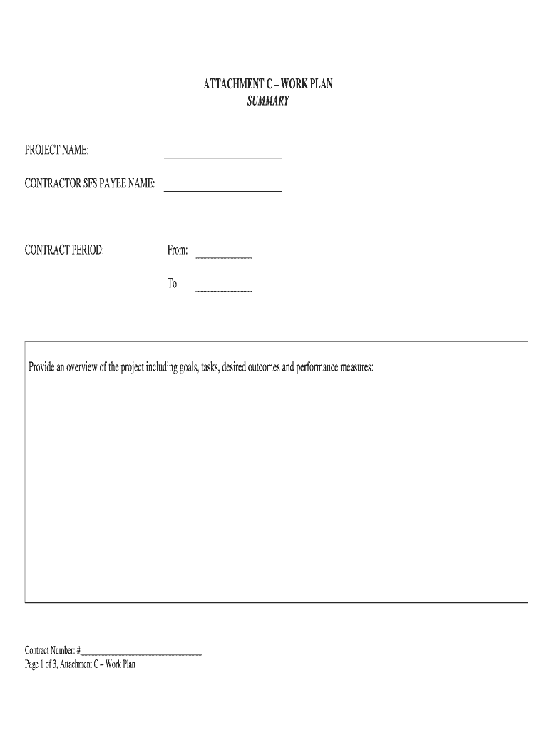 The Attachment C Work Plan is a business form used by contractors to outline project goals, tasks, and performance measures for effective project management.