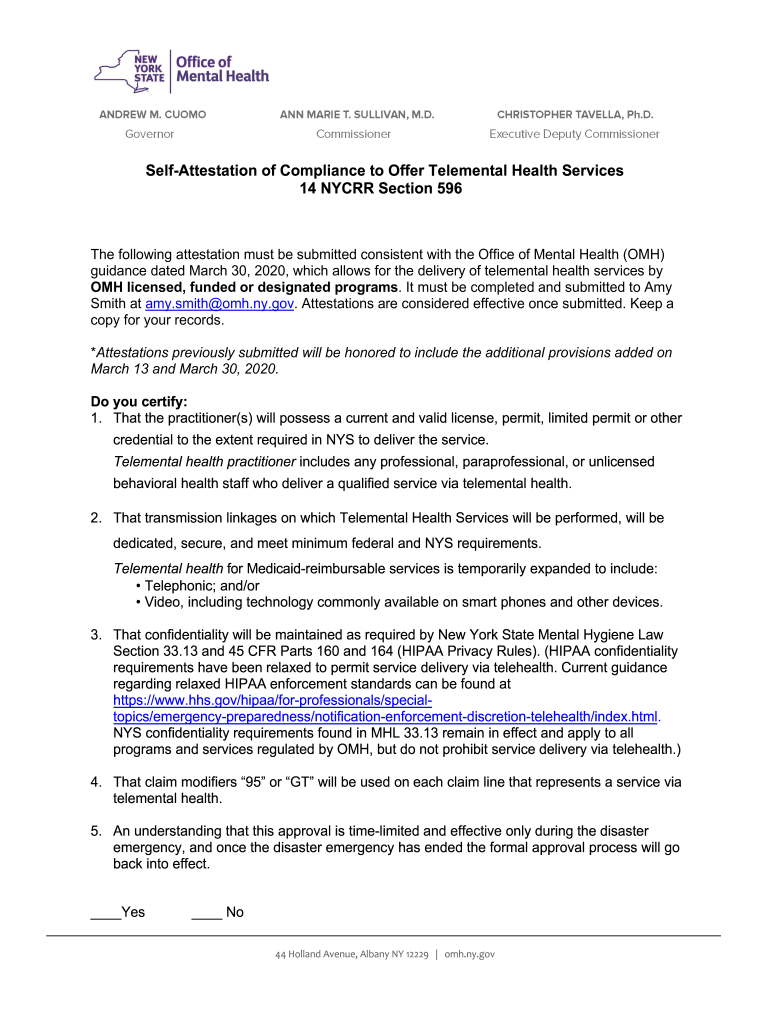 Get the free Self-Attestation of Compliance to Offer Telemental Health Services ...