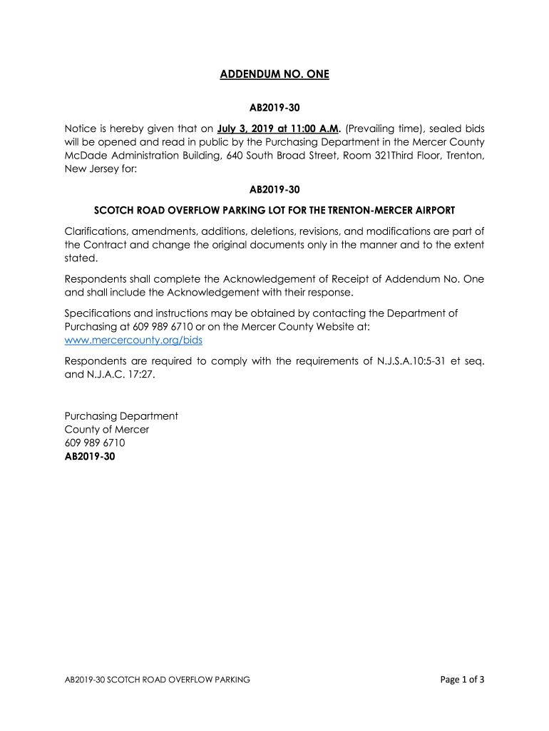 ADDENDUM NO. ONE