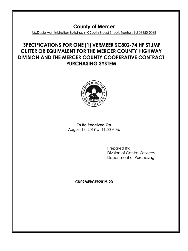 McDade Administration Building, 640 South Broad Street, Trenton, NJ 086500068SPECIFICATIONS FOR ONE (1) VERMEER SC80274 HP STUMP