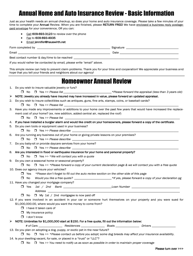 Why You Need to Complete the Annual Home and Auto Insurance Review Form