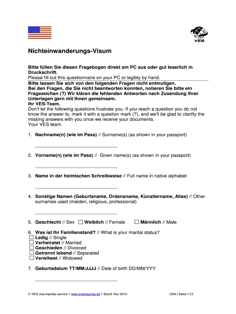 Das Nichteinwanderungs-Visum ist ein Antragsformular, das von Personen verwendet wird, um ein Nichteinwanderungsvisum für die Vereinigten Staaten zu beantragen.