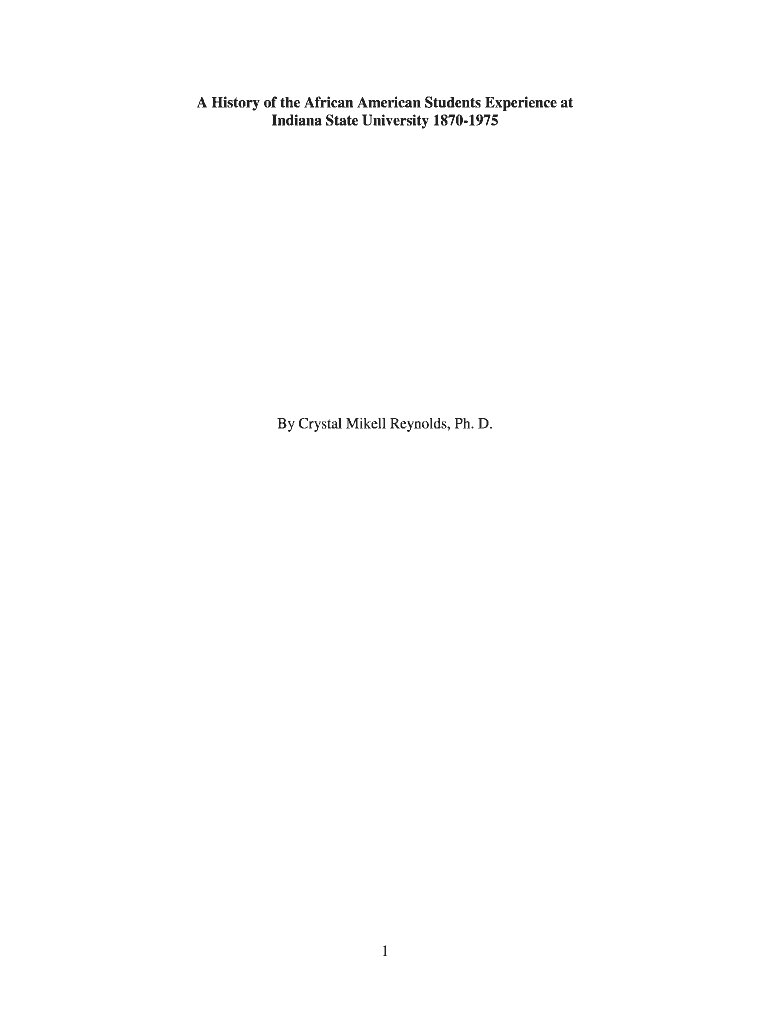 Indiana State University 18701975By Crystal Mikell Reynolds, Ph.D.1A History of the African American Students Experience at